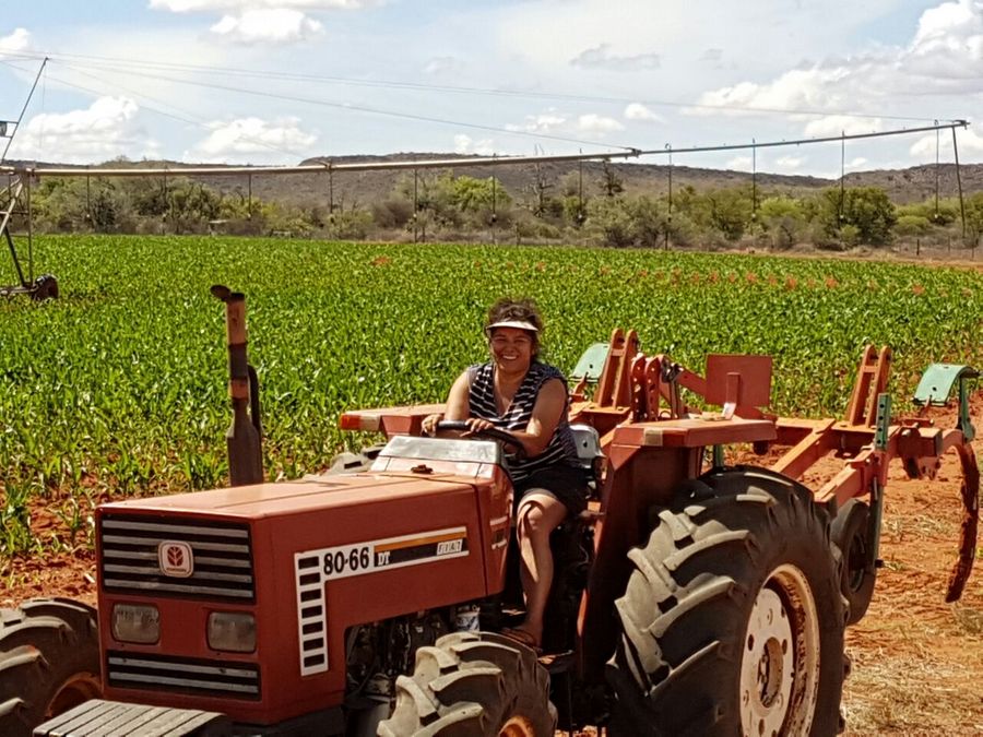 As ek terug dink, was dit seker uit desperaatheid of ordentelikheid wat hy op daai stadium “ja” gesê het…maar daar gaat ons af lande toe. Hy gee my die klein trekkertjie om mee te ry. “Okey, laat ek jou wys…jy moet jou voorwiele in die padjie hou, anders gaan jy my mielies plat ry”, sê hy. Ja, ja, hoe moeilik kan dit nou wees, dink ek by myself…ek kan mos bestuur. “Jy kan in die buitekant begin, want dis makliker, en nie sulke skerp draaie. En ek sal in die binnekant begin”, sê hy.